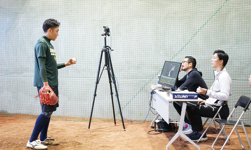 最新のトラッキング機器と体組成計を用いて、投球されたボールの球質や全身の筋肉の量などを計測します。技術・身体の2つの側面からあなたのパフォーマンスの現在地を可視化します。