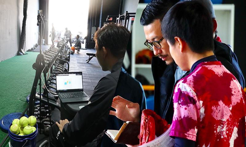 データ×映像を活用した、ネクストベース独自のピッチデザインです。選手の感覚と客観的データをすり合わせ、持ち球の球質の改善・向上、新球種の獲得のサポートをします。